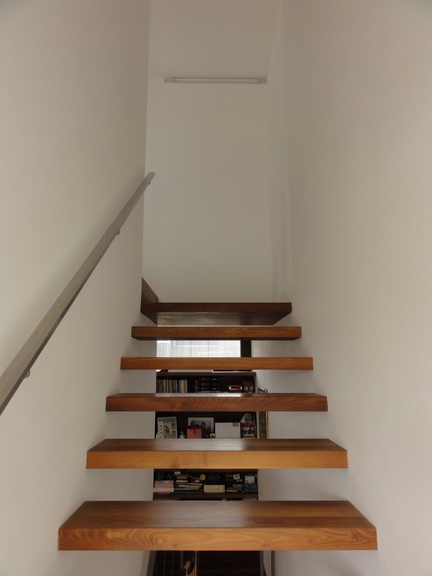The clear glass balustrade makes this angular marble staircase appear to float, highlighted further by by the polished stainless steel trimming.